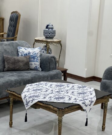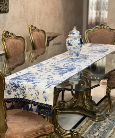 رانر داماس تیره قلمآبی مخمل ریشه دار