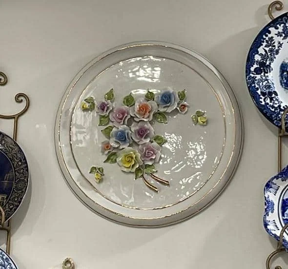 پلاک گرد دیواری چینی بزرگ گل برجسته قطر حدود ۳۰
