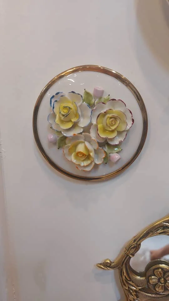 پلاک گرد دیواری چینی بزرگ گل برجسته قطر حدود ۳۰