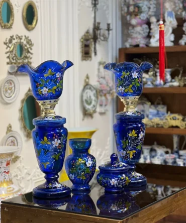 چراغ نفتدان آنتیک تراش دار تمام نقاشی دست