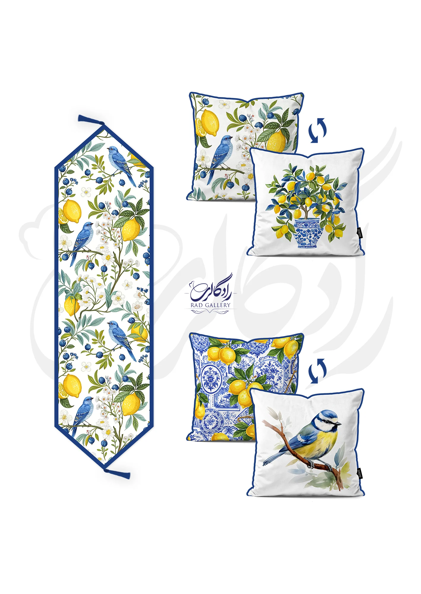 کاور کوسن مخمل دورو لیمو و پرنده