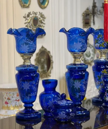 چراغ نفتدان آنتیک تراش دار تمام نقاشی دست